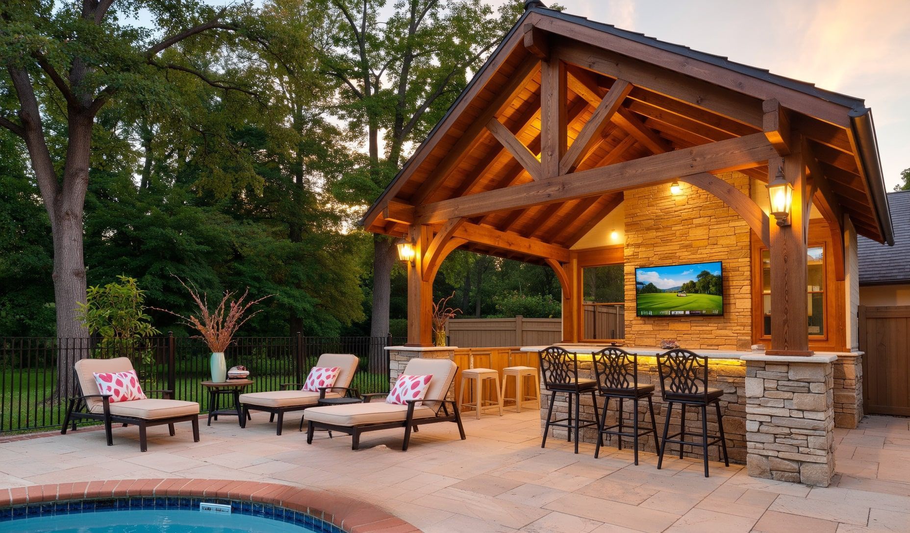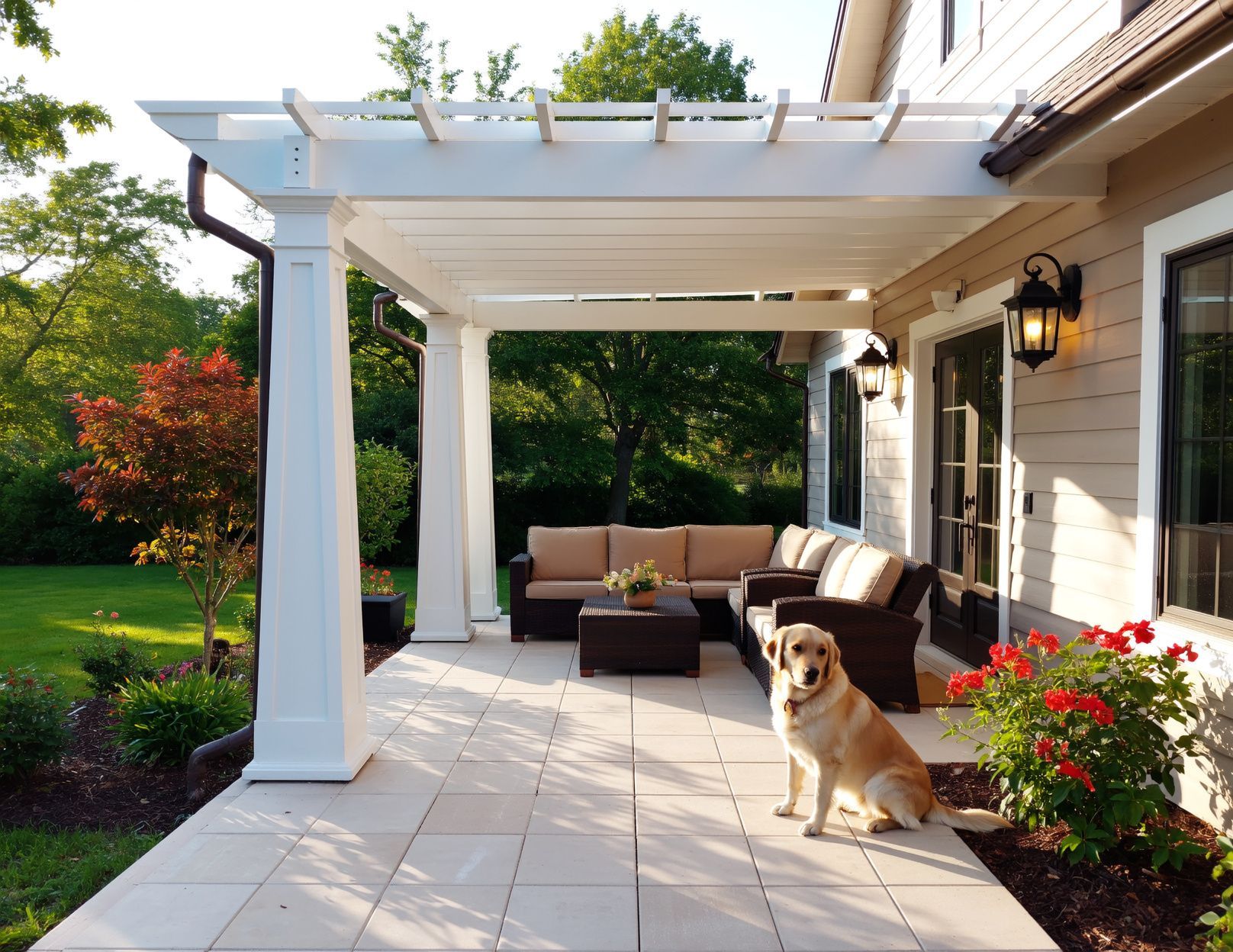 A pergola transforms a plain yard into an outdoor room. It creates a defined space for dining, relaxing, or growing climbing vines.