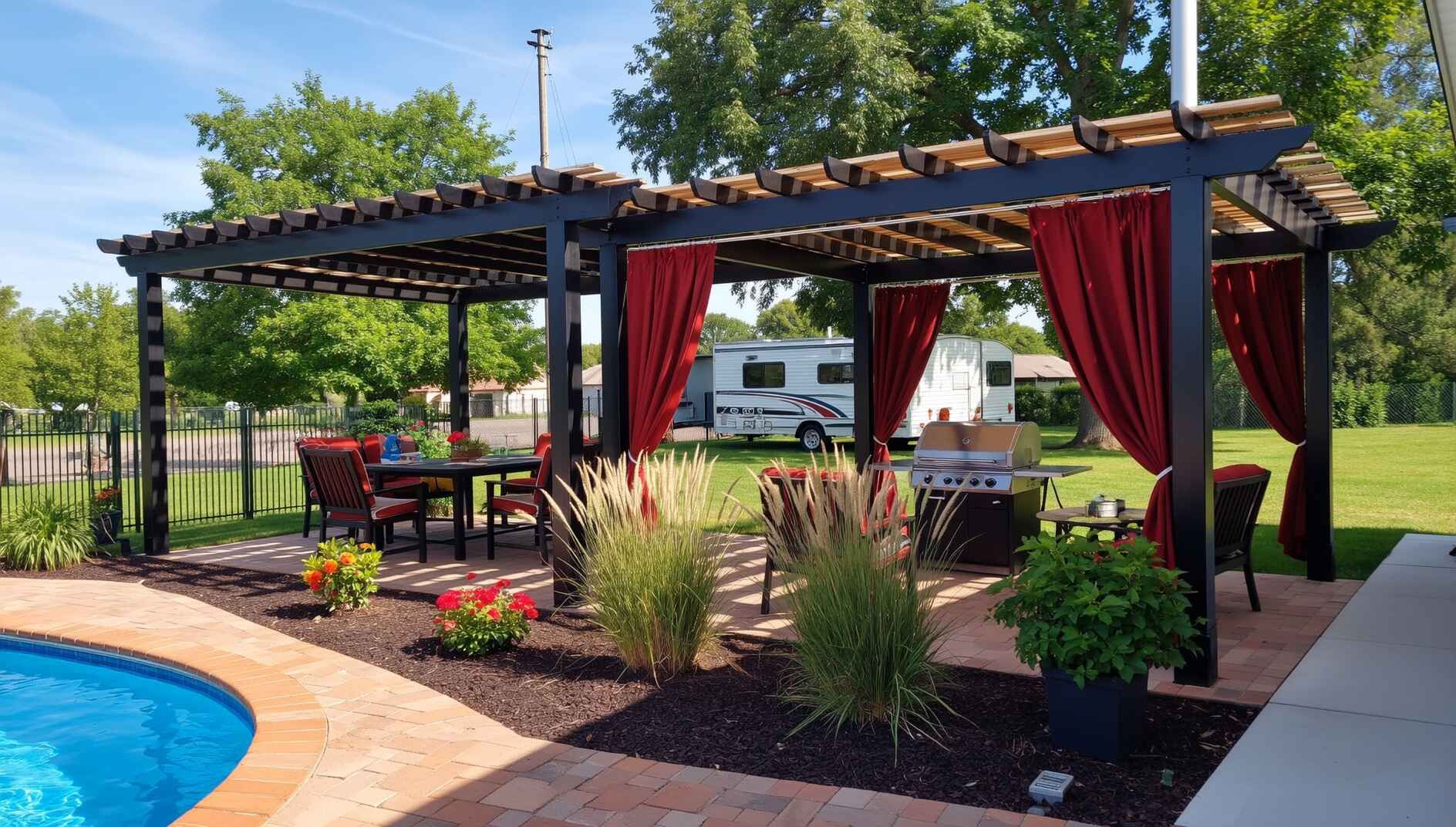 These offer a warm, natural look. Cedar is common because it handles dry heat well and has a pleasant color. Wood pergolas can be stained or left natural depending on the yard’s design.